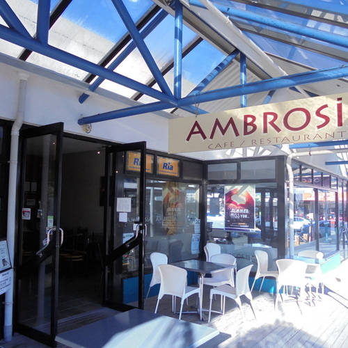 Ambrosia Café at the Cruisedeck is a licensed café and a popular place for breakfast, brunch and lunch, as well as serving very good coffee, freshly baked muffins, toasted sandwiches and paninis. The café is located at the Cruisedeck, right in the centre of Downtown Mount shops, where diners love to sit outside and enjoy the sun. Ambrosia has some cabinet food ready to go, or you can choose from the varied menu offering such delicious hot food choices as Ambrosia Big Breakfast, Corn Fritters with Bacon, Seafood Chowder, Burgers, Garlic Chilli Prawn Salad, Nachos, Seasoned Wedges and Home baked bread.