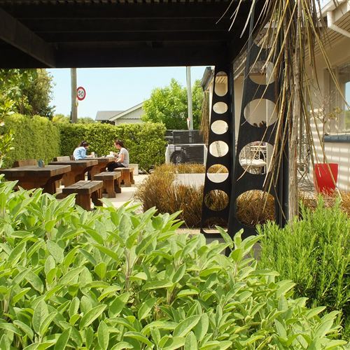 Beauvais has a great choice of seating ... in the courtyard the big timber tables , the deck with the French style cafe tables or comfortable dining chairs and tables inside.